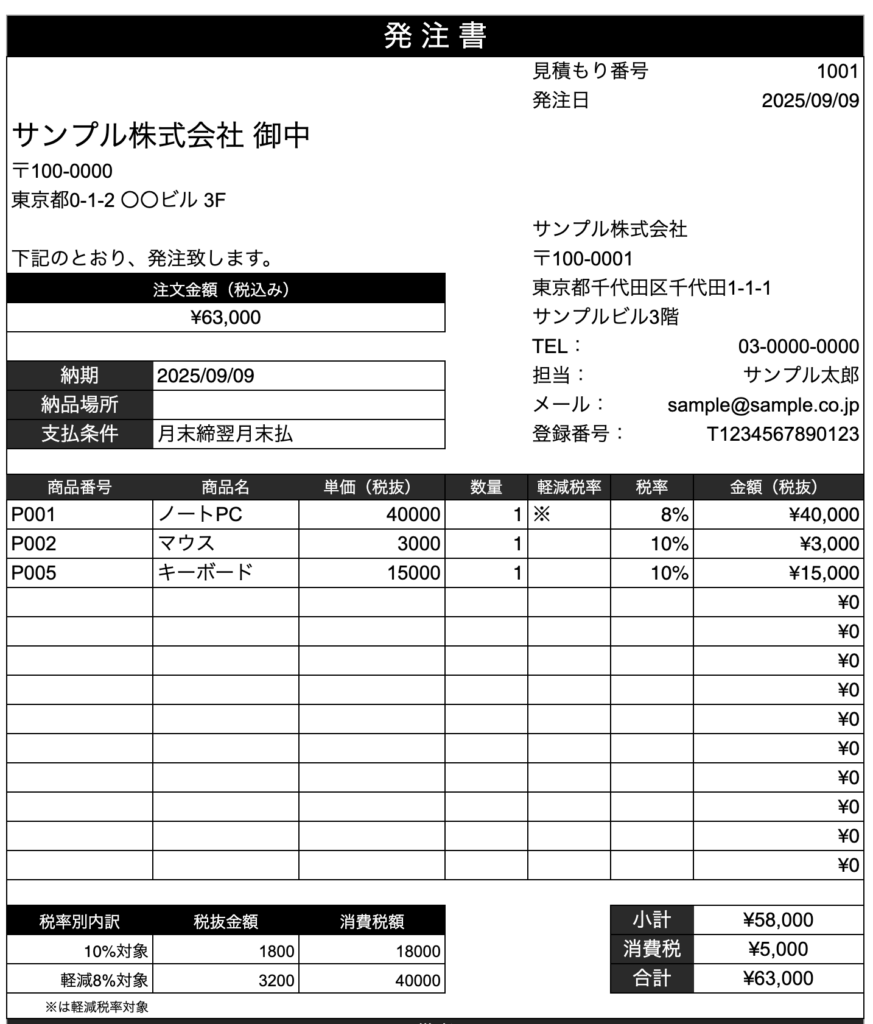 ✅ 数量や金額は自動計算されるので、手作業はほぼ不要です。